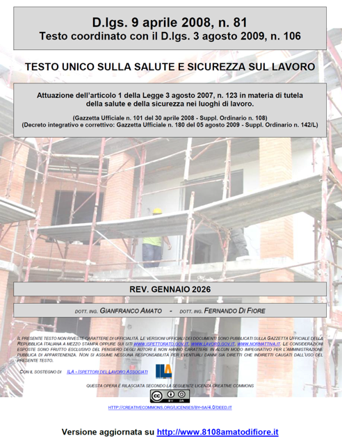 Il considerevole lavoro svolto da tempo dall’ Ing. Gianfranco Amato e dall’Ing. Fernando Di Fiore, consente di avere sempre a disposizione il testo del D. Lgs. 81/2008 aggiornato alle ultime novità introdotte dal legislatore.